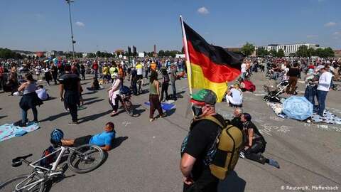 على الرغم من تحذير السلطات الصحية من مخاطر تفشي موجة وبائية ثالثة، نُظمت تظاهرات في مدن ألمانية عدة ضد القيود المفروضة لاحتواء (كوفيد-19).