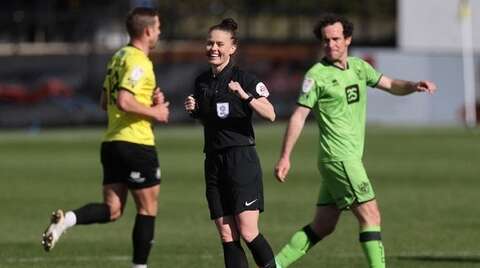 استطاعت الحكمة ريبيكا ويلش اقتحام تاريخ كرة القدم الإنجليزية بعدما أصبحت أول امرأة تدير مباراة رجال للمحترفين.