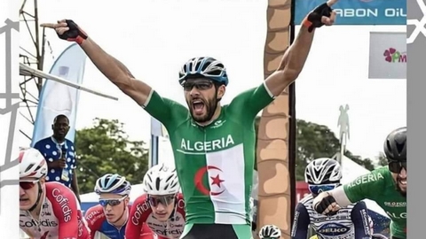 فاز الدراج الجزائري رڨيڨي يوسف المحترف في فريق ترينغانو الماليزي بكلاسيكو جزر موريس الدولي للدراجات.
