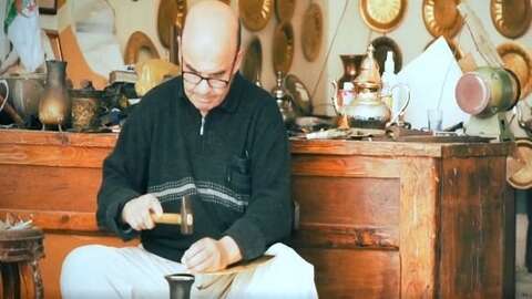 في محله بدار الحرف التقليدية بواد قريش لا يمكن للزائر إلا أن يعجب بتلك المصنوعات النحاسية التقليدية الجميلة من “سنيوات” (صينيات) ومرايا و”طاسات حمام” تشد الزوار إليها وتحرك فيهم مشاعر الحنين وسط ديكور تقليدي لا يُرى إلا عند كبار النحاسين.