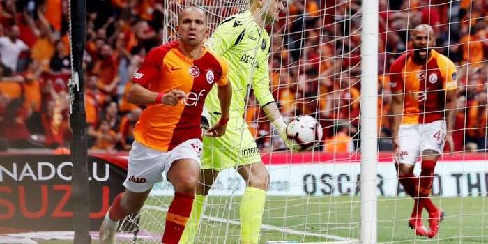 وقدم لاعب فالنسيا السابق هدف التعادل لفريقه في قمة الجولة ما قبل الأخيرة أمام فريق باشاك شهير، شريك غالاتسراي في الصدارة، قبل المباراة. وفاز زملاء الدولي الجزائري بهدفين لهدف، أحدهما كان من توقيعه، ليتوجوا باللقب قبل الجولة الختامية.