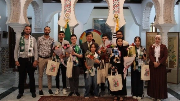 نظمت سفارة جمهورية كوريا بالجزائر, اليوم الاثنين بالجزائر العاصمة, حفلا تكريميا على شرف الفريق الوطني الجزائري الذي حقق نتيجة باهرة خلال المسابقة الدولية للشباب في الروبوت والذكاء الاصطناعي (IYRC 2025) و التي جرت مؤخرا بجمهورية كوريا.