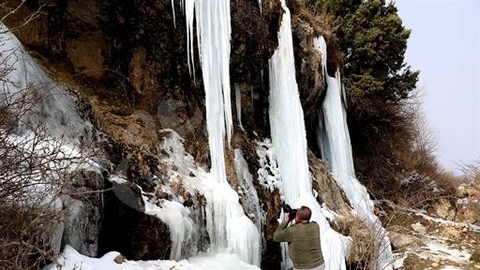 وجعل انخفاض درجة الحرارة إلى أدنى مستوياته (8 درجات تحت الصفر) بهذه المنطقة المعروفة ببرودتها الشديدة خلال فصل الشتاء إلى تحول مياه المنبع المائي المتدفقة من أعلى جبل الرفاعة تتدلى في شكل نوازل متقاربة من الجليد زادت من روعة المكان الذي امتزج فيه لون الطبيعة الأخضر برداء الثلج الأبيض الناصع.