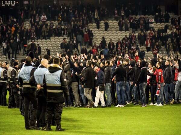 وبحسب وسائل الاعلام الفرنسية، فقد هدد بعض المشجعين لاعبي الفريق، وألقوا عدة أشياء على أرضية الملعب ما دفع اللاعبين للهرب لغرف خلع الملابس بمساعدة رجال الأمن، لكن الأمر استغرق عدة دقائق للسيطرة على الوضع، حيث شكّل رجال الشرطة طوقاً أمنيا عند مدخل غرف خلع الملابس لضمان عدم وصول أي مشجع غاضب لغرف اللاعبين.