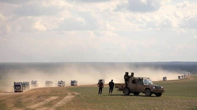 وقال المرصد الذي يتخذ من لندن مقرا له إنه رصد الجمعة دخول 7 شاحنات أمريكية مغلقة تتقدمها عربة همر وسيارة محملة برشاش ثقيل وسيارات إسعاف إلى المنطقة، أكد أنها لنقل عناصر التنظيم.