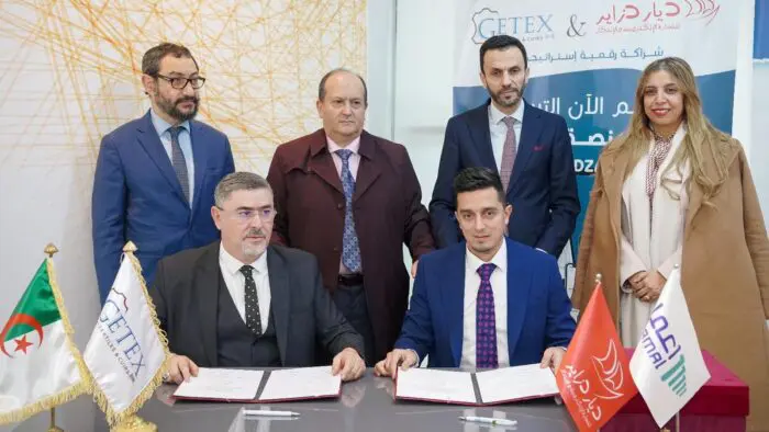وقّعت الشركة القابضة للنسيج والجلود “جيتيكس” اتفاقية شراكة مع المؤسسة الناشئة “ديار دزاير”، المتخصصة في التجارة الإلكترونية والابتكار، الثلاثاء، بمقر مسرعة الأعمال “ألجيريا فانتور”.