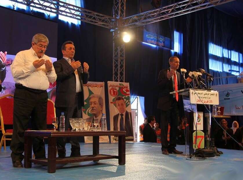 الرئيس “عبد العزيز بوتفليقة” كوننا شركاء في الحكومة ونملك الأغلبية بالمجلس الشعبي الوطني”، مؤكدا في السياق ذاته على أن برنامج الحزب يعتمد على أربعة محاور أساسية تتمثل في الحفاظ على الأمن والاستقرار والوحدة الوطنية، وتحسين تسيير أمور الدولة، وإعمار الجزائر اقتصاديا، وتحسين السياسة الاجتماعية بالبلد، حيث طالب بضرورة اليقظة للحفاظ على أمن واستقرار الوطن الذي اعتبره مكسبا مهما و هو أساس تقدم الدول، مستدلا في ذلك بالأوضاع الصعبة التي يمر بها العالم العربي والتوتر الكبير الذي تعرفه حدودنا لولا اليقظة الكبيرة لأفراد الجيش الوطني الذي يستحق التحية، وقال أحمد أويحي: ” لا بديل لنا إلا الجزائر فيها نحيا وفيها نموت “، وطالب بضرورة الوقوف من أجل الحفاظ على أمن البلد والمواطنين، وعدم القبول بالمساس بوحدة الوطن الذي هو دور الدولة والمواطن وذلك من خلال التمسك بالدين الإسلامي وعدم قبول دخول الديانات الأخرى كالشيعة والأحمدية، كما أشار إلى ضرورة التمسك بالمصالحة الوطنية التي أوقفت الدموع والدماء، أما فيما يخص محور تحسين تسيير أمور البلد، فقد طالب بضرورة تنفيذ اللامركزية وتجسيدها على أرض الواقع والعمل على مشاركة المواطن في علاج أموره وسماع حاجياته والاستجابة لتطلعاته.