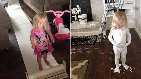 أصيبت فيكتوريا فارمر بصدمة شديدة عندما هرعت إلى غرفة المعيشة، لتجد ابنتها أنيستين مغطاة بالطلاء الأبيض من رأسها حتى أخمص قدميها، وآثار دعسات قدميها في كل مكان من المنزل، كما أفسدت الجدران والموقد بالطلاء.