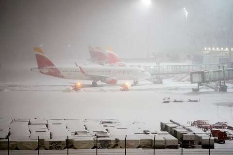 وقالت الشركة المشغلة لمطارات البلاد على تويتر: “بسبب الظروف الجوية السيئة، يتم تحويل الرحلات الجوية من مطار مدريد باراخاس”.