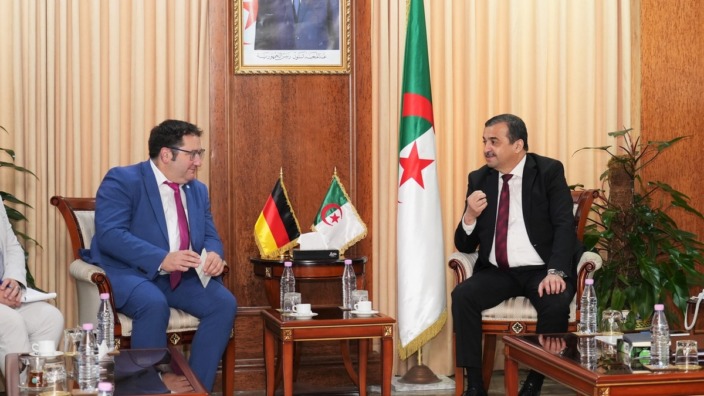 بحث وزير الدولة، وزير المحروقات والمناجم، محمد عرقاب، مع كاتب الدولة بوزارة الاقتصاد والتنمية الإقليمية والطاقة بمقاطعة بافاريا الألمانية، توبياس غوتاردت فرص تعزيز التعاون من خلال مشاريع شراكة ذات منفعة متبادلة، تشمل تسويق الغاز الطبيعي، واعتماد التقنيات منخفضة الكربون في صناعة النفط والغاز، وتطوير ونقل وتسويق الهيدروجين الأخضر وصناعة المعدات ذات الصلة على غرار المحللات.