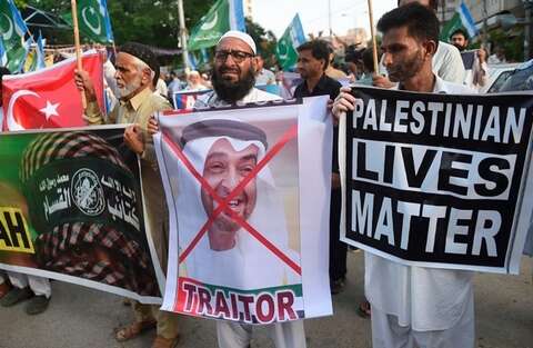 تظاهر عشرات آلاف الباكستانيين، احتجاجًا على إعلان الإمارات والاحتلال الإسرائيلي تطبيع العلاقات بينهما رسميًا، بما في ذلك فتح سفارات في أراضي البلدين.