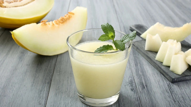 في خلاط كهربائي نضع الشمام مع ماء الورد والفانيلا والسكر نشغل الخلاط حتى يصبح العصير جاهزا.