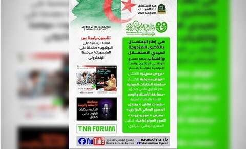 ستتميز الاحتفالات بالذكرى المزدوجة لعيدي الاستقلال والشباب المحتفل بها رسميا يوم 5 جويلية عبر كامل التراب الوطني، بتنظيم تظاهرات ثقافية افتراضية مختلفة تتناول أهم المحطات التاريخية للجزائر.
