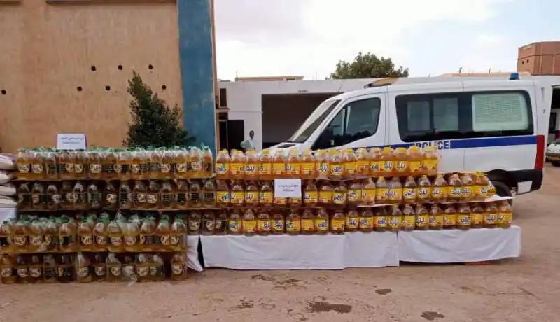 ومكنت العملية من حجز 423 قارورة زيت من حجم 5 لتر و 91 كيس من مادة السميد من مختلف الأوزان.