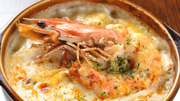 نضيف البيشامل للجمبري ونضعه بصحن يدخل للفرن بعد تزيينه بالجبن المبشور ونتركه يتحمر قليلا.