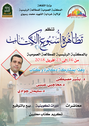 تتواصل بالمكتبة الرئيسية للمطالعة العمومية لولاية غرداية وإلى غاية 23 من الشهر الجاري، فعاليات تظاهرة أسبوع الكتاب في طبعتها الثانية، حيث شملت هذه الأخيرة الكثير من المحاور منها محاضرات خاصة بعالم الكتاب وورشات تكوينية إضافة إلى تكريم عدة كتاب محليين.