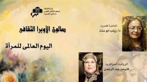 يستضيف صالون الأوبرا الثقافي بالقاهرة، بمناسبة اليوم العالمي للمرأة، أمسية الأربعاء، على المسرح الصغير مجموعة من المبدعات العربيات وهن الكاتبات الجزائرية فتيحة عبد الرحمن بقة، السورية قمر صبري الجاسم، اليمنية فاطمة العشبي، والمصريات الكاتبة والناشرة الدكتورة زينب أبو سنة، والشاعرات إلهام عفيفي، عبير العيسوي، حنان شاهين، شاهيناز الفقي، ياسمين عبد العزيز، تحت إدارة الفنان أمين الصيرفي ويتخللها فقرة غنائية لفرح بسمة بمصاحبة عازفة البيانو دانا محسن.