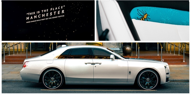 وقد تم دمج نحلة مانشستر – التي تمثل منذ فترة طويلة سمعة مانشستر كرمز للصناعة والعمل – في عدة أماكن ، وأبرزها على قاعدة السيارة الخارجية بلون التوركواز، إلى جانب خطوط عريضة متباينة مع الدهان الفضي التقليدي الذي يهيمن على الجزء الخارجي من سيارة مانشستر غوست.
