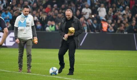 وحمل المدرب جمال بلماضي كأس بطولة الأمم الإفريقية التي حققها مع منتخب الجزائر، ليقوم بعدها إلى إعطاء إشارة بداية المواجهة، وسط تصفيق حاد من قبل جماهير أولمبيك مارسيليا المتواجدة في الملعب.