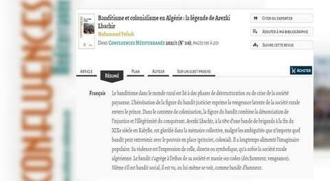 ويقترح هذا المقال الذي نشر في العدد الأخير من هذه المجلة الفرنسية التي تصدر كل ثلاثة أشهر تحت عنوان “اللصوصية والاستعمار في الجزائر: أسطورة أرزقي البشير”، تحليل مكانة اللص في المخيال الشعبي من خلال حالة أرزقي البشير الذي ذاع صيته بمنطقة القبائل مع نهاية القرن التاسع عشر، إذ لا تزال الألسن تتناقله.