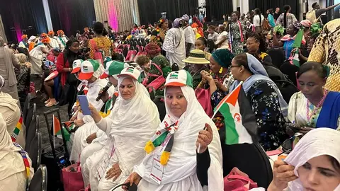 أبرز الوفد النسائي الصحراوي المشارك في الطبعة الثالثة من ملتقى حوار المرأة الإفريقية بجوهانسبووغ دور المرأة الصحراوية في بناء المؤسسات خلال معركتي التحرير والبناء رغم واقع اللجوء الذي فرضه الاحتلال .