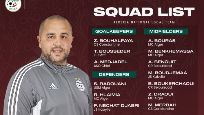 كشف مدرب المنتخب الجزائري لكرة القدم للاعبين المحليين، مجيد بوقرة، عن قائمة أولية تضم 28 لاعبا للمشاركة في التربص التحضيري تحسبا لنهائيات بطولة إفريقيا للاعبين المحليين “شان 2025″، المقررة من 2 إلى 30 أوت المقبل بكل من كينيا، تنزانيا وأوغندا، حسب ما أعلنت عنه الاتحادية الجزائرية لكرة القدم على موقعها الرسمي.