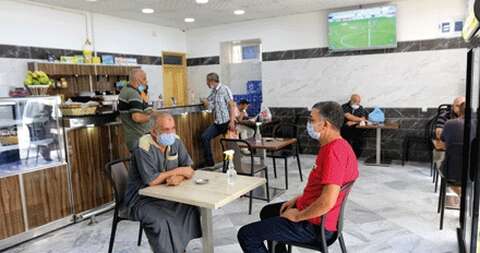 وعلق أصحاب المقاهي على أبواب محلاتهم إعلانات تنص على إجبارية ارتداء الكمامة ومنع الدخول دونها، حيث بدت جل المقاهي شبه خالية من الزبائن، في حين كان من بداخلها يرتدون الكمامات، كما كان عدد الجالسين في الطاولة لا يتجاوز الشخصين وفق ما تنص عليه التعليمات، حيث لمسنا من كل الموجودين حذرا شديدا من خلال التعقيم المستمر لليدين وعدم الجلوس لفترة طويلة، إذ جلسنا في إحدى المقاهي لنصف ساعة، فكان كل من يلج يخرج في وقت لا يزيد عن 10 دقائق، في حين كان أصحاب المقاهي حذرين ويوجهون نظرات إلى الزبائن من حين إلى آخر.