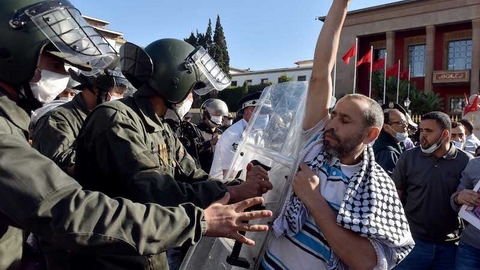 يواصل نظام المخزن قمع المسيرات الرافضة للتطبيع، حيث أقدمت قوات الأمن المغربية في عدد من المدن المغربية على منع ومحاصرة احتجاجات شعبية تضامنية مع فلسطين ومنددة بالجرائم الصهيونية وبالتطبيع المخزني مع مجرمي الحرب، مستخدمة القوة المفرطة ضد المتظاهرين أدت الى وقوع اصابات في صفوفهم.