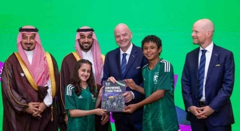 وتم تسليم الملف من خلال وفد رسمي برئاسة الأمير عبد العزيز بن تركي بن فيصل بن عبد العزيز وزير الرياضة، رئيس اللجنة الأولمبية والبارالمبية السعودية، ورئيس الاتحاد السعودي لكرة القدم ياسر المسحل، إضافة لطفلين من مراكز التدريب الإقليمية للاتحاد السعودي لكرة القدم.