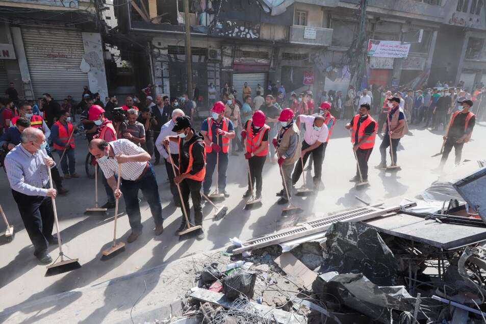 الشبان والفتيات انتشروا في المناطق التي دمرتها الطائرات الصهيونية، حاملين المكانس، ونظفوا الأرضيات من الغبار وبقايا الركام، ويقول يحيى السراج رئيس بلدية غزة: