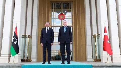 كشف مصدر، السبت، أن رئيس حكومة ليبيا عبد الحميد الدبيبة اتفق مع الرئيس التركي رجب طيب أردوغان على توجيه طلب رسمي لتركيا، لزيادة عدد أفراد بعثتها الأمنية والاستشارية في ليبيا.