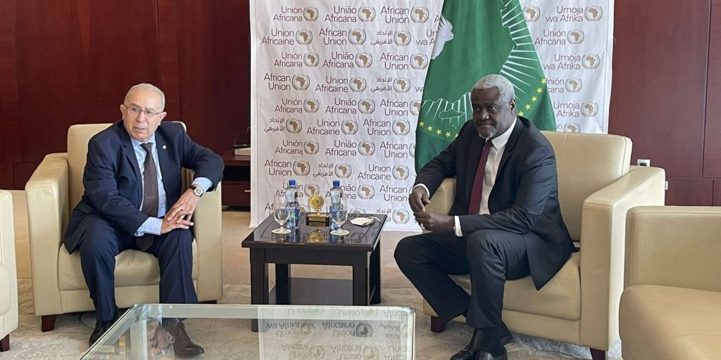عقد وزير الشؤون الخارجية والجالية الوطنية بالخارج، رمطان لعمامرة، جلسة عمل بأديس أبابا، مع رئيس مفوضية الاتحاد الإفريقي، موسى فقي محمد، تطرق فيها إلى الملفات السياسية والأمنية المطروحة على أجندة الاتحاد الإفريقي، حسبما أفاد به بيان للوزارة، الإثنين.