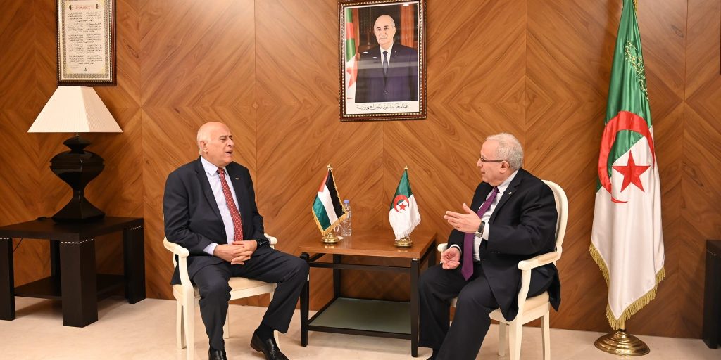 استقبل وزير الشؤون الخارجية والجالية الوطنية بالخارج، رمطان لعمامرة، الأحد، أمين سر اللجنة المركزية لحركة “فتح” ورئيس المجلس الأعلى الفلسطيني للشباب والرياضة، السيد جبريل الرجوب، بمقر الوزارة.