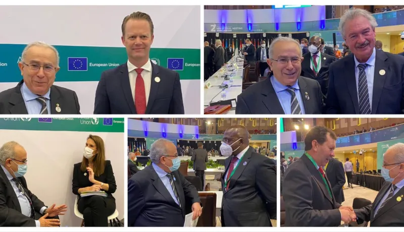 عقد وزير الشؤون الخارجية، رمطان لعمامرة، اليوم الثلاثاء، بكيغالي، جلسات عمل ولقاءات مع عديد من الزملاء الأفارقة والأوربيين، على هامش الاجتماع الوزاري لدول الاتحاد الإفريقي والاتحاد الأوروبي.