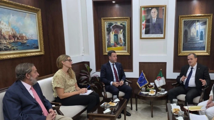 في سياق المساعي المستمرة لتعزيز العلاقات الاقتصادية بين الجزائر وشركائها الدوليين، استقبل وزير التجارة الخارجية وترقية الصادرات، البروفيسور كمال رزيق، بمقر الوزارة، وفدًا رفيع المستوى من الاتحاد الأوروبي. وحسب بيان لوزارة التجارة الخارجية فانه ضمّ الوفد رئيس بعثة الاتحاد بالجزائر، دييغو ميادو، إلى جانب سفيرة مملكة الدانمارك، اكاترين فروم هوير، وسفير مملكة إسبانيا، فرناندو موران. واللقاء جاء في إطار الدفع بعلاقات التعاون التجاري نحو آفاق أوسع، بما يخدم مبدأ الشراكة المتوازنة ومقاربة “رابح–رابح” بين الجانبين . ويأتي هذا الاجتماع في إطار مواصلة الحوار الاقتصادي والتجاري بين الجزائر والاتحاد الأوروبي، بما يهدف إلى ترسيخ علاقات التعاون والشراكة القائمة بين الجانبين. العلاقات بين الجزائر والاتحاد الأوروبي تُعد من أبرز الشراكات الإقليمية التي تمتد عبر عدة مجالات، لاسيما في الجانب الاقتصادي، حيث يمثل الاتحاد الأوروبي أحد أكبر الشركاء التجاريين للجزائر، سواء من حيث الصادرات أو الواردات. وتندرج هذه اللقاءات في سياق السعي المتواصل لتعزيز هذا المسار، وفتح آفاق جديدة للتعاون في ميادين متعددة كالتجارة، الاستثمار، وتطوير المشاريع المشتركة. كما يُعد هذا اللقاء جزءًا من سلسلة مشاورات تهدف إلى تقييم أطر التعاون الحالية، واستكشاف فرص جديدة تسمح بتوسيع الشراكة في ظل التحديات الاقتصادية الراهنة، سواء على المستوى الإقليمي أو الدولي. ويؤكد هذا الاجتماع أهمية الدور الذي تلعبه الدبلوماسية الاقتصادية في دعم العلاقات بين الجزائر ومختلف الدول الأوروبية، في إطار شراكة تقوم على مبادئ التفاهم والاحترام المتبادل.