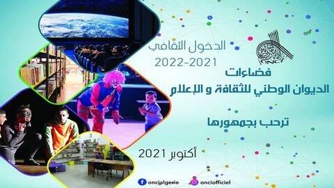 أعلن الديوان الوطني للثقافة و الإعلام يوم الاربعاء عن استئناف برنامجه الثقافي والفني عبر القاعات التابعة له على المستوى الوطني بداية من الفاتح أكتوبر القادم، وذلك بمناسبة الدخول الثقافي 2021 /2022 .