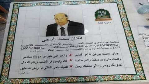تزين لوحة فنية تذكارية للمجاهد والفنان الشعبي المرحوم محمد الباجي جانبا من واجهة مركز الفنون قصر رياس البحر -حصن 23 تكريما لروح الفنان الراحل و ذلك بمناسبة الذكرى الـ58 لعيد الاستقلال