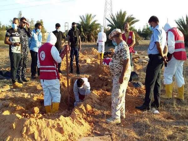 عثر فريق الهلال الأحمر الليبي على مقبرة جماعية جنوب غرب مدينة سرت من المرجح أن تكون من بقايا قتلى تنظيم داعش الذي كان يسيطر على المدينة.
