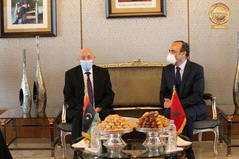 أجرى رئيس مجلس النواب الليبي عقيلة صالح مع نظيره المغربي الحبيب المالكي، مباحثات رسمية في مقر مجلس النواب المغربي بالرباط، تناولت الأزمة الليبية.
