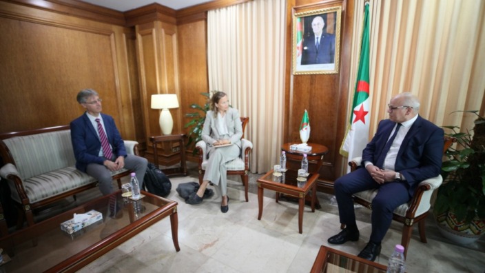 وجرى اللقاء بمقر الوزارة, بحضور رئيسة التعاون الإنمائي بالسفارة الألمانية, هانا إيلج, وإطارات من القطاع, وذلك على هامش فعاليات معرض التجارة البينية الإفريقية المنظم بالجزائر العاصمة من الـ4 إلى الـ10 سبتمبر الجاري, يضيف المصدر ذاته.