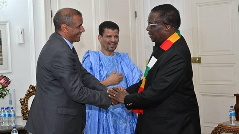 أستقبل فخامة الرئيس اميرسون مناگاگوا رئيس جمهورية زمبابوي بالقصر الرئاسي في العاصمة هراري، السيد محمد يسلم بيسط السفير في جنوب افريقيا و المكلف بالملف الافريقي، بصفته مبعوثا لرئيس الجمهورية، الأمين العام للجبهة السيد ابراهيم غالي، وفق “واص”، الاربعاء.
