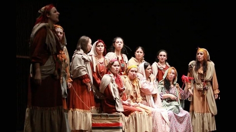 وتم عرض هذا العمل التاريخي على ركح المسرح الوطني الجزائري محي الدين بشطارزي، في إطار العروض المنتجة بمناسبة سبعينية ثورة التحرير المجيدة، حيث كتب نصها مغزوشن بلقاسم وأخرجها يسعد عبد النور، وتدور أحداثها بمنطقة القبائل خلال القرن التاسع عشر، وتبرز مقاومة الشعب الجزائري للاستعمار الفرنسي الذي جند كل وسائله الإجرامية واللاإنسانية على غرار نفي المقاومين إلى كاليدونيا الجديدة.