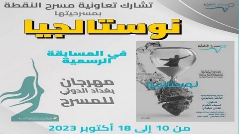 سيكون الفن الرابع الجزائري ممثلا بمسرحية “نوستالجيا” المنتجة حديثا من قبل تعاونية “مسرح النقطة” في المنافسة الرسمية للدورة الرابعة لمهرجان بغداد الدولي للمسرح التي ستجري فعالياتها من 10 إلى 18 أكتوبر المقبل، حسب ما علم لدى التعاونية.