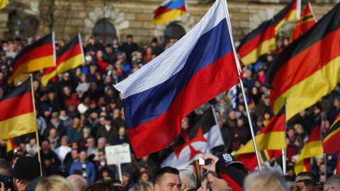 احتشد آلاف المتظاهرين في شوارع العاصمة الألمانية، برلين،الاثنين رفضاً للسياسات الغربية المعادية لروسيا.
