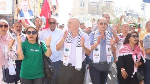 نظم الإتحاد الجهوي للشغل بصفاقس، الأحد، تجمعا جماهيريا أمام دار الإتحاد، أردف بمسيرة شعبية، إحياء للذكرى الأولى لطوفان الأقصى ودعما لصمود شعب غزة وفلسطين، ومقاومته الباسلة وإسناد لمحور المقاومة في ساحات النضال، ووفاء للشهداء.