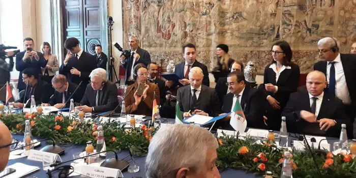 تكلل الاجتماع الوزاري الأول لوزراء الطاقة المعنيين بمشروع ممر الهيدروجين الجنوبي والذي انعقد بالعاصمة الإيطالية روما بمشاركة وزير الطاقة، محمد عرقاب، بالتوقيع على الإعلان المشترك للنوايا السياسية بشأن مشروع ممر الهيدروجين الجنوبي (SoutH2 Corridor)، بحيث تؤكد الأطراف الموقعة نيتها لتعزيز التعاون لتطوير هذا المشروع الاستراتيجي الذي يربط مواقع الإنتاج في الجزائر بالاتحاد الأوروبي.