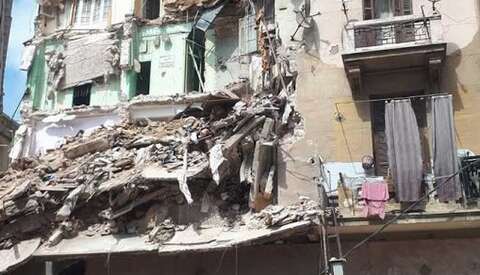 انهار عقار مكون من أربعة أدوار، ومأهول بالسكان، الجمعة، في منطقة العطارين وسط الإسكندرية، شمالي مصر.