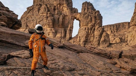 ومن خلال الصور فقد ترجم “ستادر” تواجده بـ “مكان غير مألوف” عندما ارتدى لباس رواد الفضاء ليبعث برسالة عبر المجلة العالمية بأن “المريخ موجود على أرض الجزائر”.