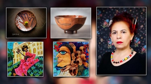 من جهة أخرى، تقدم الفنانة مجموعة ثرية من التحف الفنية الخزفية المميزة من حيث التصميم والألوان المستلهمة من التراث الأمازيغي لمنطقة الأوراس التي تنحدر منها كتجربة موازية مع الرسم.