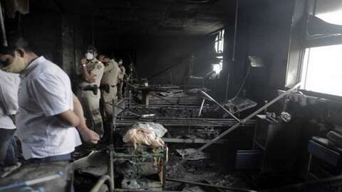 وفتح تحقيق في أسباب الحريق الذي أودى بحياة 13 مصابا بكوفيد ، الجمعة في مستشفى في إحدى ضواحي مدينة بومباي.